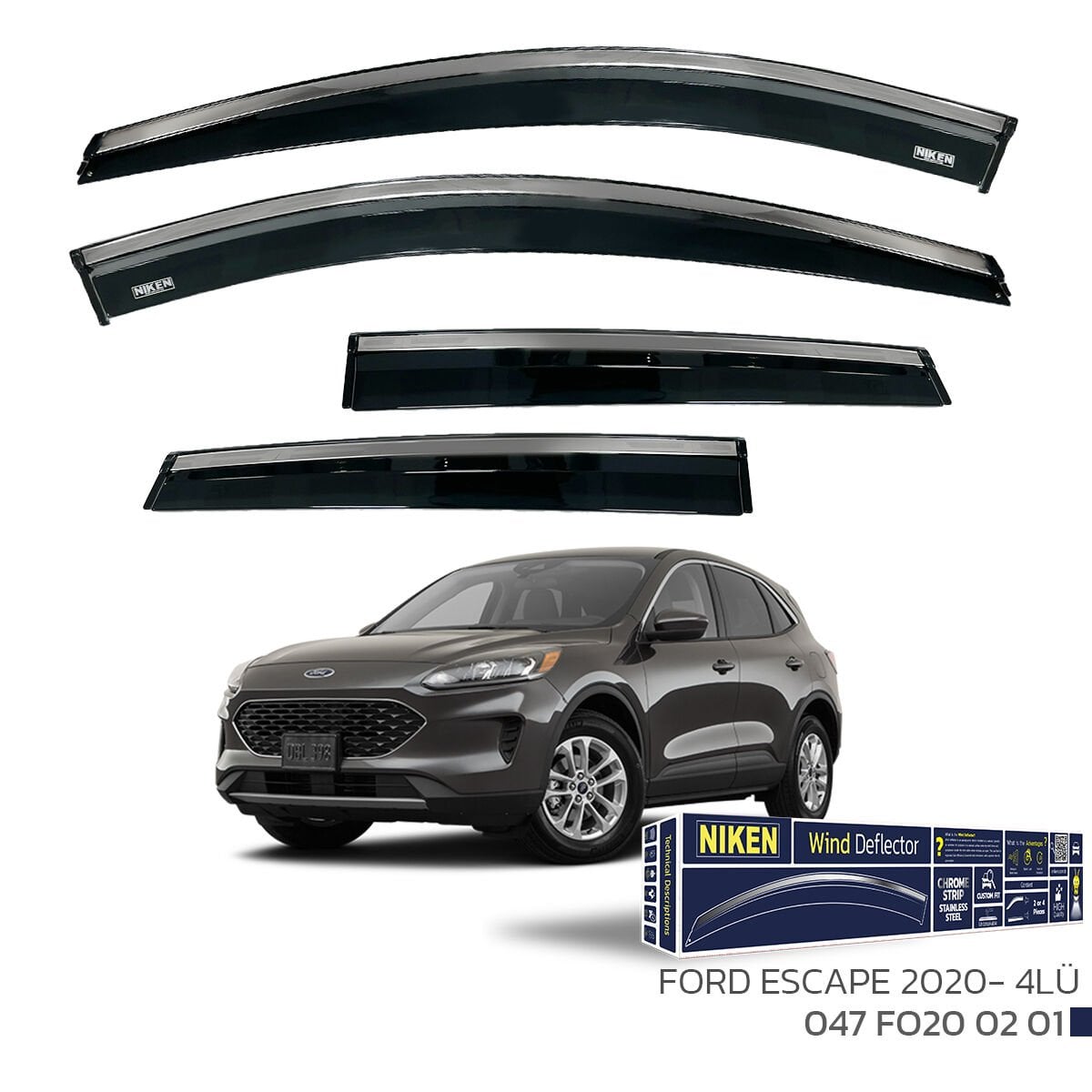 Niken Ford Escape uyumlu krom şeritli cam rüzgarlığı, 2020 ve sonrası modeller için milimetrik ölçülerle üretilmiştir. Aerodinamik yapısı sayesinde yüksek hızlarda rüzgar sesini minimuma indirir ve yağmurlu havalarda camı araladığınızda içeri su girmesini engeller. Birinci sınıf esnek pleksi gövdesi ve solmayan paslanmaz krom şeridi ile aracınıza hem lüks bir görünüm hem de fonksiyonellik katar. Arkasındaki yüksek mukavemetli bantlar sayesinde delme ve vidalama gerektirmeden profesyonelce uygulanır.