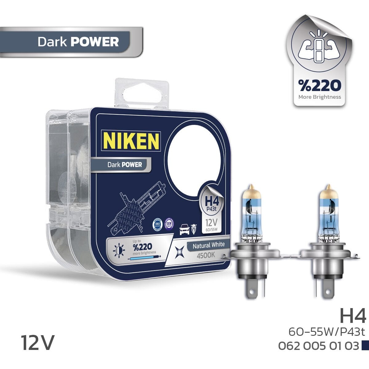 Niken H4 Performans Halojen Ampul 12V 60/55W Dark Power P43t 4500K