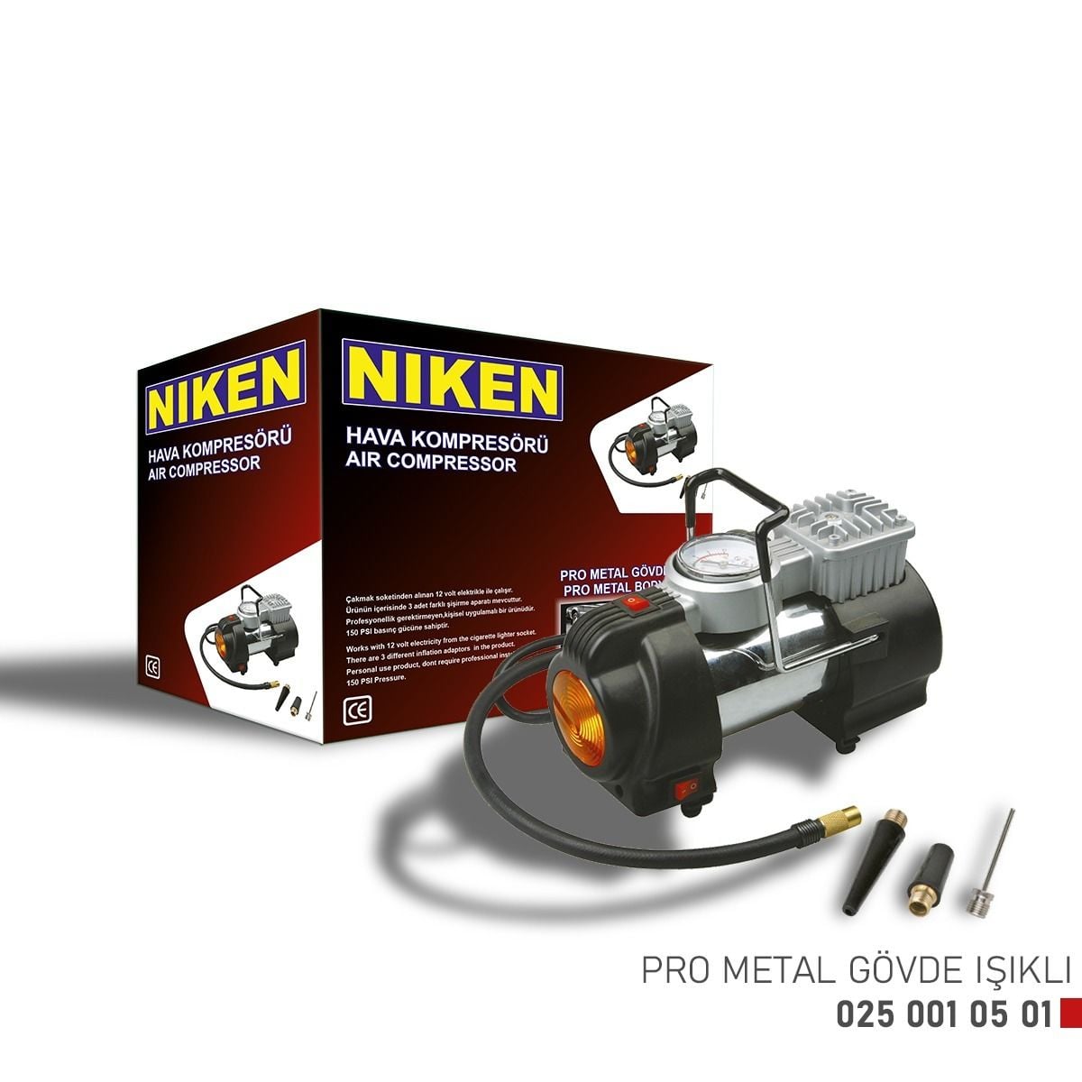 Niken Hava Kompresörü Metal Gövde Işıklı, 12V voltajında çalışan ve 280cm uzunluğunda bir kabloya sahip olan bir taşınabilir hava kompresörüdür. İçeriğinde 3 adet şişirme ucu bulunmaktadır, bu da çeşitli ekipmanları şişirmek için geniş bir kullanım sağlar. Bu kompresörün öne çıkan özelliklerinden biri, metal gövdesi ile sağlam ve dayanıklı bir yapıya sahip olmasıdır. Metal gövde, uzun süreli kullanım için dayanıklılık ve güvenilirlik sağlar. Ayrıca, kompresörün üzerinde bulunan ışıklı özellik, karanlık ortamlarda kullanımı kolaylaştırır ve acil durumlarda işlevselliği artırır. Niken Hava Kompresörü Metal Gövde Işıklı, taşınabilirliği, dayanıklılığı ve kullanım kolaylığıyla araç lastikleri, bisiklet lastikleri, spor ekipmanları ve diğer şişme ürünlerin hızlı ve etkili bir şekilde şişirilmesi için ideal bir çözümdür.