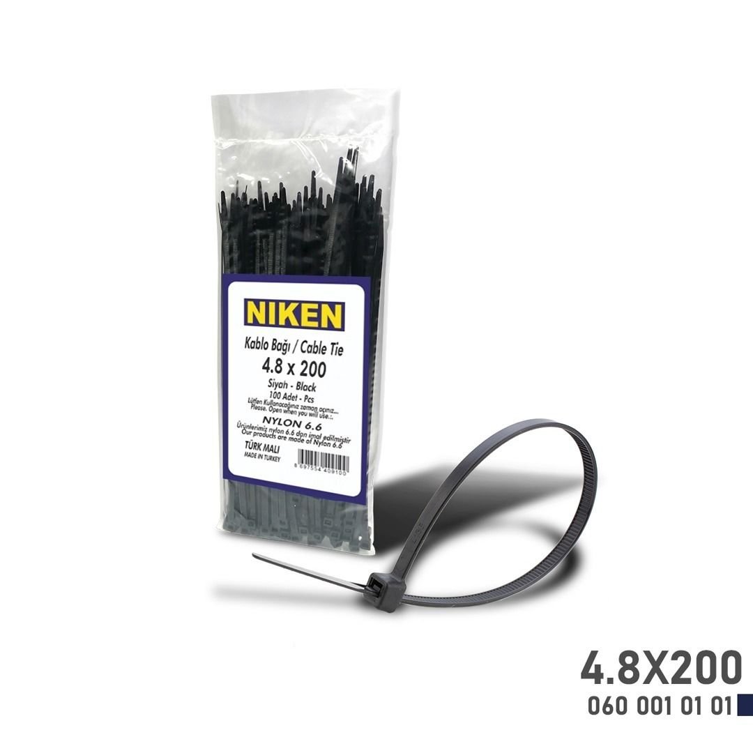 Niken Kablo Bağı Siyah 4,8X200 (100 Adet)